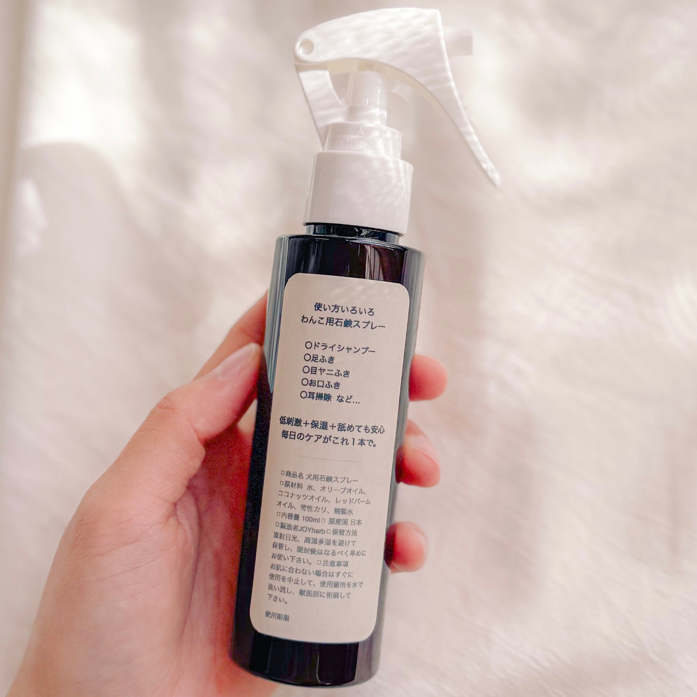 石鹸スプレーです。1本でさまざまなケア使えます。